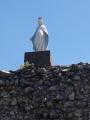 Une forte chaleur est annoncée pour ce dimanche, sans enlever l'envie de marcher de 7 randonneurs, à noter presque la parité dans le groupe : 4 femmes, 3 hommes. Départ du parking du tunnel de Fort l'Ecluse pour s'attaquer à une montée relativement raide. Après avoir admiré le point de vue et les fleurs, nombreuses à cette période de l'année, nous reprenons notre marche et descendons vers le village de Longeray. A un croisement avant de reprendre une montée, nous pouvons admirer une statue avec le symbole du Chemin de Compostelle, oeuvre faite par un artisan local. Nous trouverons une 2ème statue à la Vierge de Léaz. Après être remontés sur le plateau, nous redescendons en direction de Léaz. En début d'après-midi, sous la chaleur, nous montons au belvédère de la Vierge de Léaz. Puis nous prenons le chemin du retour vers le parking, en empruntant un sentier qui longe le Rhône, majoritairement à l'ombre. Malgré la chaleur, nous sommes tous satisfaits de notre journée