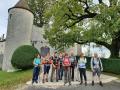 Nous étions 10 au départ de cette jolie randonnée sous un ciel incertain. Petite peur avant d’arriver, le Suran était sorti de son lit et inondait tous les champs environnant. Le chemin est large et agréable et nous nous dirigeons vers le château d’Andelot, ancienne forteresse moyenâgeuse bien restaurée ouvert actuellement en chambre d’hôte. Après quelques photos, nous repartons vers le belvédère qui surplombe toute la vallée, où nous pouvons voir les monts du Jura, mais des nuages nous cachent le Mont Blanc… En chemin nous croisons des groupes de randonneurs qui marchent pour  octobre rose (cancer du sein), et nous nous mêlons à eux dans une clairière aménagée, ou nous achetons pour la bonne cause, soupe, crêpe et gaufre, ce qui agrémente notre pique-nique initial. Nous reprenons notre chemin à travers les bois (avec ceps) qui nous ramène à notre point de départ, Gigny. Nous visitons la très vieille abbatiale romane qui est à l’origine de la création de l’abbaye de Cluny.
