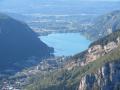 Nous nous arrêtons au belvédère du Peney qui domine le lac de Sylans. Les glacières apparaissent timidement dans l'ombre puis l'autoroute des Titans et Roche-Rousse, vue magnifique toute en nuances de vert.