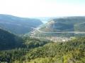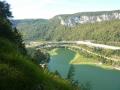 Au belvédère de Roche-Carrelet, vue sur les Neyrolles dominées par le Mont Cornet et en second plan la Roche Merveilleuse. Au fond nous reconnaissons Nantua, son Lac et son viaduc autoroutier qui s'engouffre sous le tunnel des Monts d'Ain.