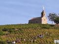 Le matin : une balade au cœur des vignes à Fleurie. Nous observons çà et là la maturité des raisins, et encourageons les quelques vendangeurs du dimanche. En chemin, un arrêt incontournable à «La Chapelle de la Madone» dédiée à la Vierge Marie, édifiée dans les années 1870. De là, une vue panoramique sur le vignoble beaujolais et ses villages s’offre à nous.