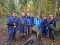 Malgré une météo instable, 8 randonneurs sont au départ. Dans un premier temps, nous nous rendons à la Fontaine aux Moines où nous faisons une courte pause à l'abri sous les arbres. Nous reprenons la marche en direction de Meyriat. Peu avant l'Abbaye, nous suivons le ruisseau et passons devant la cascade qui alimentait la roue d'une ancienne scierie. Quand nous arrivons aux ruines de l'Abbaye, nous ne manquons pas d'aller saluer le Moine. Puis nous nous dirigeons vers la cabane des forestiers pour la pause pique-nique, où nous pouvons nous installer à l'abri et au sec. Après ce temps de restauration, nous repartons en longeant le ruisseau jusqu'au Pont des Planches, ensuite direction Rivoire, espace agréable qui invite à la détente.