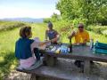 Il nous faut maintenant monter à la chapelle Saint Romain pour le pique-nique : moment convivial avec dégustation du vin blanc de Jongieux et partage de quelques gourmandises. Merci.