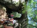 13 participants pour cette randonnée de 16Km au départ du Bois de Païolive. Superbe site aux rochers difformes sculptés par l’eau au fil des millénaires, qu’une la forêt de chênes verts habille, notre chemin est bien balisé, à l’ombre, très agréable. Nous quittons ce havre de paix pour nous diriger vers le village de Berrias que nous traversons pour longer le Granzon, en premier par un large chemin dans les vignes puis presque dans son lit. Sur un rocher plat dans un méandre nous faisons notre pose repas bien à l’ombre accompagné par le chant des grenouilles. Nous repartons avec un balisage quasi inexistant jusqu’au GR4, et nous finissons notre circuit par un chemin empierré, bordé de murets sous un soleil de plomb, avant de regagner le Bois de Païolive et nos voitures. Jolie randonnée, aux paysages variés dans une très bonne ambiance.