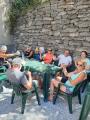 petite chapelle (Chalvet des Borels)où nous faisons la pause pique nique. Nous rencontrons des bergers et leur troupeau de 1300 moutons, sous bonne garde avec les patous. Puis nous poursuivons vers le hameau des Meyries avec son église, son bac en bois pour se rafraichir puis continuation de la descente et retour à Ville-Vieille. Sur le retour arrêt à Chateau-Queyras, belle vue depuis ses hauteurs et visite du château pour certains.