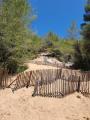 Lundi 15 », Montagne de sable » au départ de l’hôtel VTF. Nous empruntons des chemins aux senteurs provençales printanières, dégageant, en vue, une mer bleue lagon azurée par le ciel… Chemin faisant, voici la dune de sable, diminuée à force d’ascension en voie de disparition. Quelques mètres de dénivelé escarpés!! Nous descendons, en douceur dans le sable mou, glissant agréablement sous nos pieds. Suivi, le pique-nique apprécié en bordure de mer, sur une jolie plage. Les pieds dans l’eau pour certains ! Soleil et passages ombragés accompagnent notre retour par le littoral. Une journée magnifique, agrémentée comme à l’habitude, par la gentillesse du groupe.