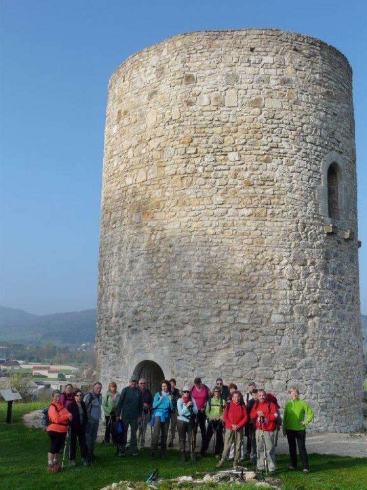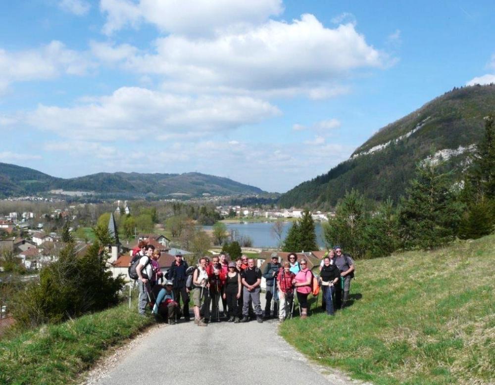 21 randonneurs par un matin frais d'Avril pour gravir les Monts d'Ain . Départ de Port par la plaine jusqu'à Saint-Martin-du-Fresne avec un arrêt à la Tour . Puis direction le signal en passant par le bac de Balme puis la ferme de la Lachère sur le plateau de Chamoise . Belle grimpette jusqu'au signal des Monts d'Ain 1127m d'altitude et bien que le Mont Blanc soit indiqué à 100km à vol d'oiseau,il est resté invisible derrière la grisaille . Repas bien mérité en admirant les paysages des Neyrolles,le lac Sylans au fond et les méandres de l'autoroute . Puis bonne descente avec vue sur Nantua et son lac pour remonter à l'aire des parapentes ou nous assistons à de beaux envols . retour à Port avec son église et son lac . Très bonne journée conviviale comme à l'accoutumée .
