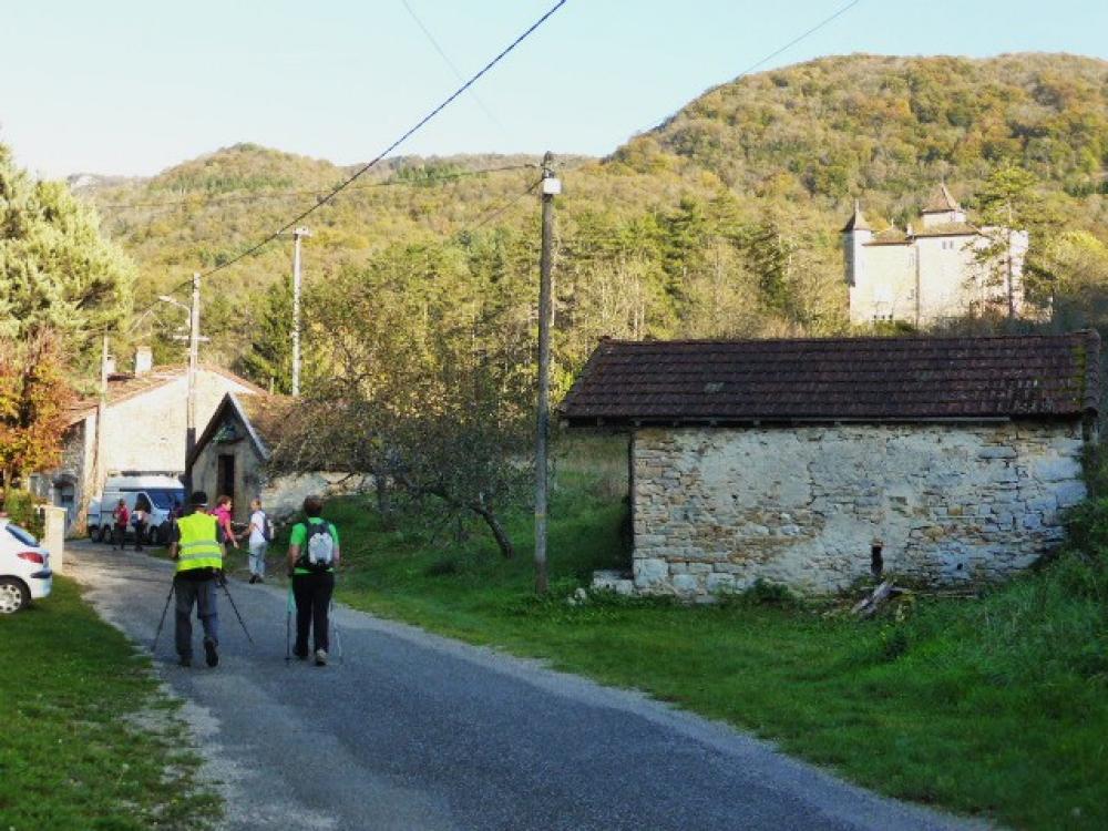 19 randonneurs au départ de Matafelon (parking de la Mairie) - direction la colonie du ruisseau - le village de Coiselet et son Château - Fontaine noire - Point de Vue des Marmites - Passage à proximité du barrage de Charmine/Moux en reconstruction et remonter par la petite route avec vue sur le barrage le Pont et la rivière pour ensuite traverser le village de Charmine - un bel après-midi d'Automne ensoleillé
