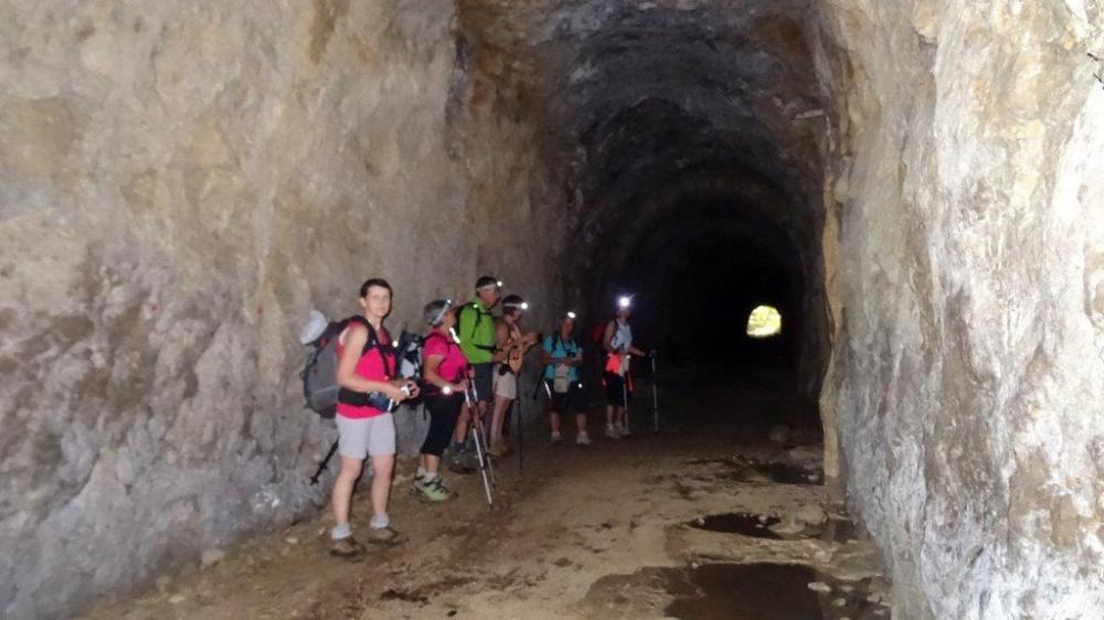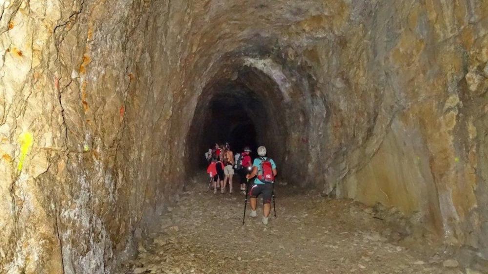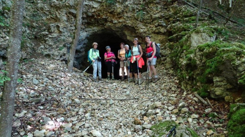 La sortie au crêt du midi ayant été annulée en raison des gros risques d'orage , nous sommes restés dans la région et avons effectué , la randonnée du train fantôme . Voie de chemin de fer qui devait relier Tenay à Hauteville , mais qui ne fut jamais achevée , malgré l'énorme travail déjà accompli ; il reste donc des tunnels pour le plus grande joie des randonneurs . Au départ de la Ragiaz avant Hauteville six filles et un beau gosse , donc direction la Charabote par les tunnels et arrivée au sommet de la cascade qui ne donnait pas beaucoup malgré les orages de la veille . Le village de Nantuy et retour à la Ragiaz par les crêtes . Excellente journée et l'orage a attendu le soir pour éclater .