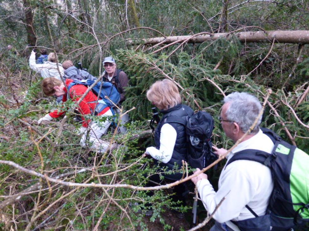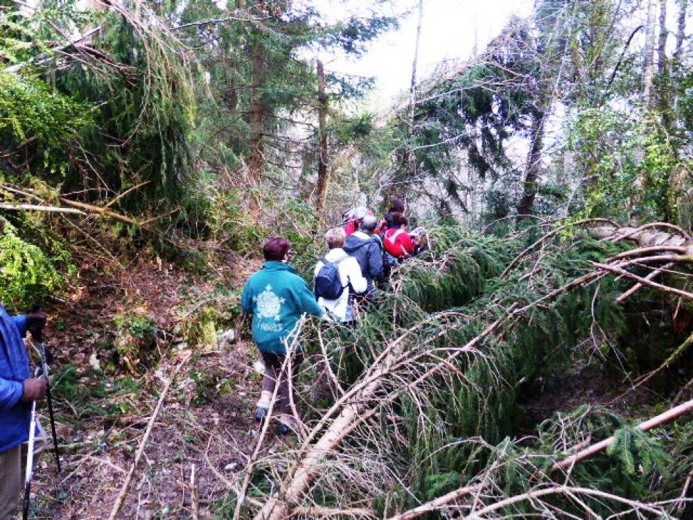 20 randonneurs au départ du Barrage d'Intriat en direction de la Grange du Mont en passant vers la Vierge qui veille sur la vallée d'Izernore - direction Crépiat - puis Heyriat et Sonthonnax-la-Montagne - après quelques hésitations nous descendons en direction de Nébois ( notre guide ne devait pas être dans un bon jour ) - mais à mi-descente , nous trouvons quelques sapins tombés sur le chemin que nous arrivons à traverser soit en passant dessous ou dessus avec plus ou moins de facilité - tous prennent cet incident à la rigolade et c'est avec des cris et des rires que nous passons ces difficultés - peut-être l'effet du vendredi 13 ou le passage vers la vierge ? En tout cas bonne après-midi et très bonne ambiance .