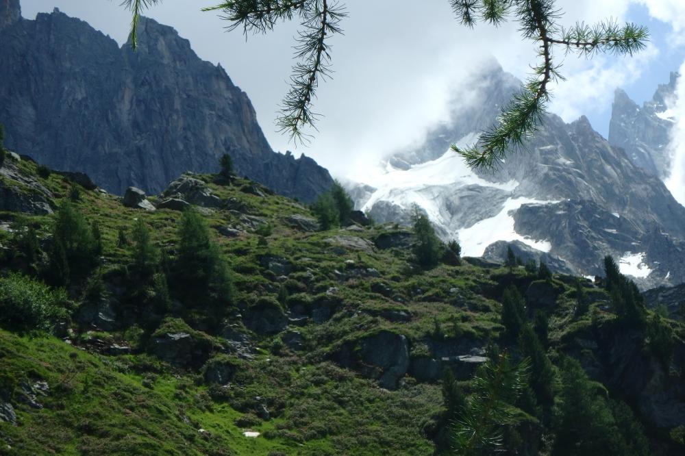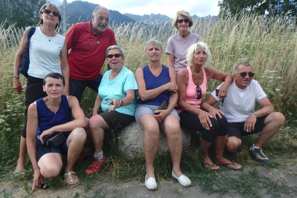 Au départ de Chamonix huit randonneurs avides de montagne !! cinq partent pour une grande randonnée , trois: plus modestes, amoureux de la montagne et des grands espaces utilisent le train du Montenvers afin d'être plus vite sur le grand balcon du Signal Forbes, et sur toute la longueur du Balcon du Mont-Blanc, le spectacle est magique: Mer de Glace, les Drus, Aiguilles de Chamonix, la chaîne du Mont-Blanc dans sa magnificence. En face, de l'autre côté de la vallée de Chamonix :Les Aiguilles Rouges, le Brévent, le repérage du Lac Blanc, de la Flégère, de Planpraz, de l'index et des sommets dont nous ne connaissons pas les noms. Nous en avons plein les yeux : UN GRAND SPECTACLE !!! Une pause s'impose ! Autour d'une boisson fraîche, les huit se retrouvent, satisfaits de leur magnifique journée ensoleillée...