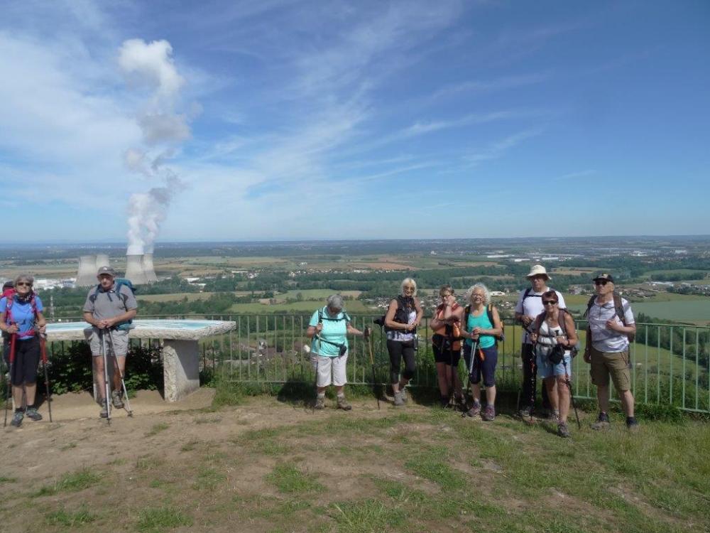 C'est au parking à proximité des vestiges de l'église St Martin que débute cette journée pour 11 randonneurs . Traversée du village pittoresque de Verna ( maisons en pierres - nombreuses fontaines - 1 puits rond - 2 puits en cloche ) . C'est vers la petite chapelle au toit de lauzes que nous débutons la montée au terme de laquelle nous atteignons le haut des falaises . Magnifique panorama sur la plaine de l'Ain - les lacs de Hière - les falaises - le Rhône . Nous repartons pour la visite du plateau de Larina : Site Archéologique remarquable découvert en 1977. Il s'agit de gros corps de fermes avec de nombreuses dépendances ou des habitants du moyen âge vivaient en autarcie. Il y a également les vestiges d'une chapelle et 2 nécropoles . Continuation de la randonnée vers la chapelle du plateau des aviateurs ou a eut lieu le crash de 2 avions, un en 1944 qui fit 15 victimes. Puis en 1969 celui des forces armées canadiennes .