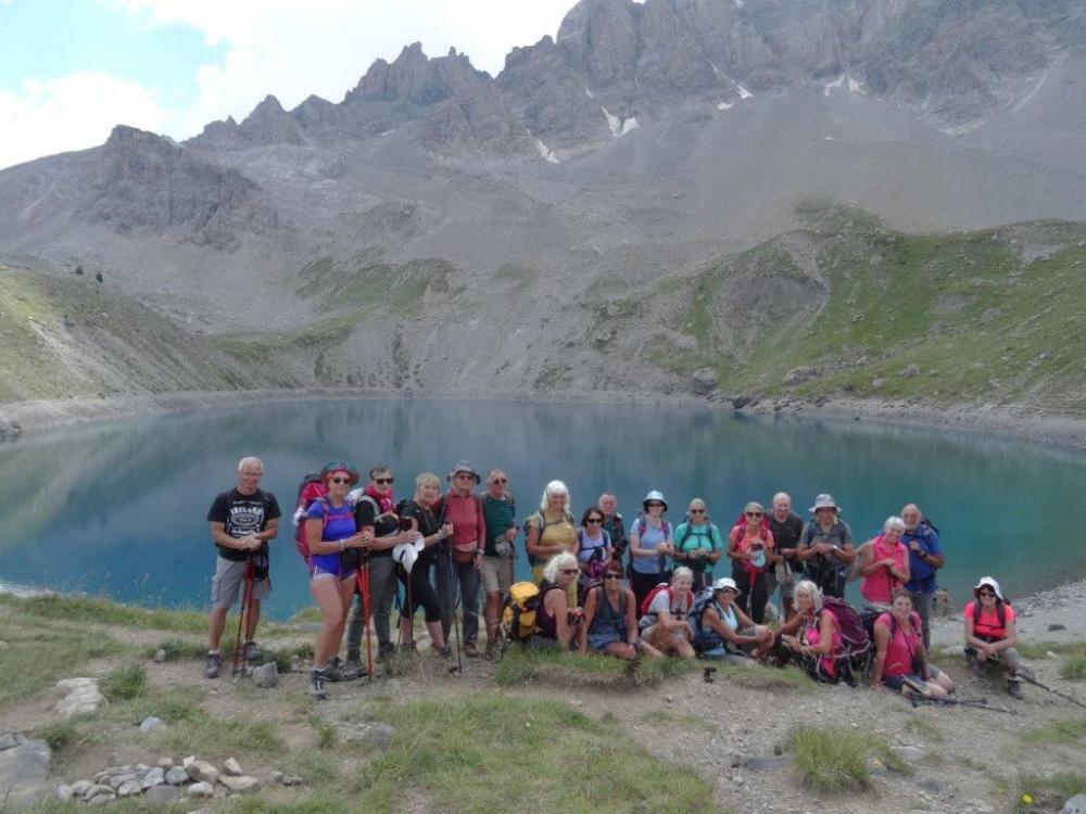 Jeudi 14, « Le lac de sainte Anne en circuit » au départ de Ceillac. Accompagnateurs : 1er groupe, Jean Jacques et Josette, 20 personnes, 13 Km, 876 D+, 2ème groupe, Madeleine et Jean Paul, 5 personnes. Départ de la station de ski « le Mélézet » et longue montée assez soutenue et serpentant en forêt pour atteindre le lac miroir bien envahi par les herbes. Nous continuons à découvert sur une piste de télésièges et nous arrivons enfin au lac glacière de saint Anne et sa chapelle. Un magnifique lac d’une couleur émeraude. Après la pause déjeunée nous amorçons une descente technique pour arriver au parking du départ par un chemin ombragé longeant la rivière.