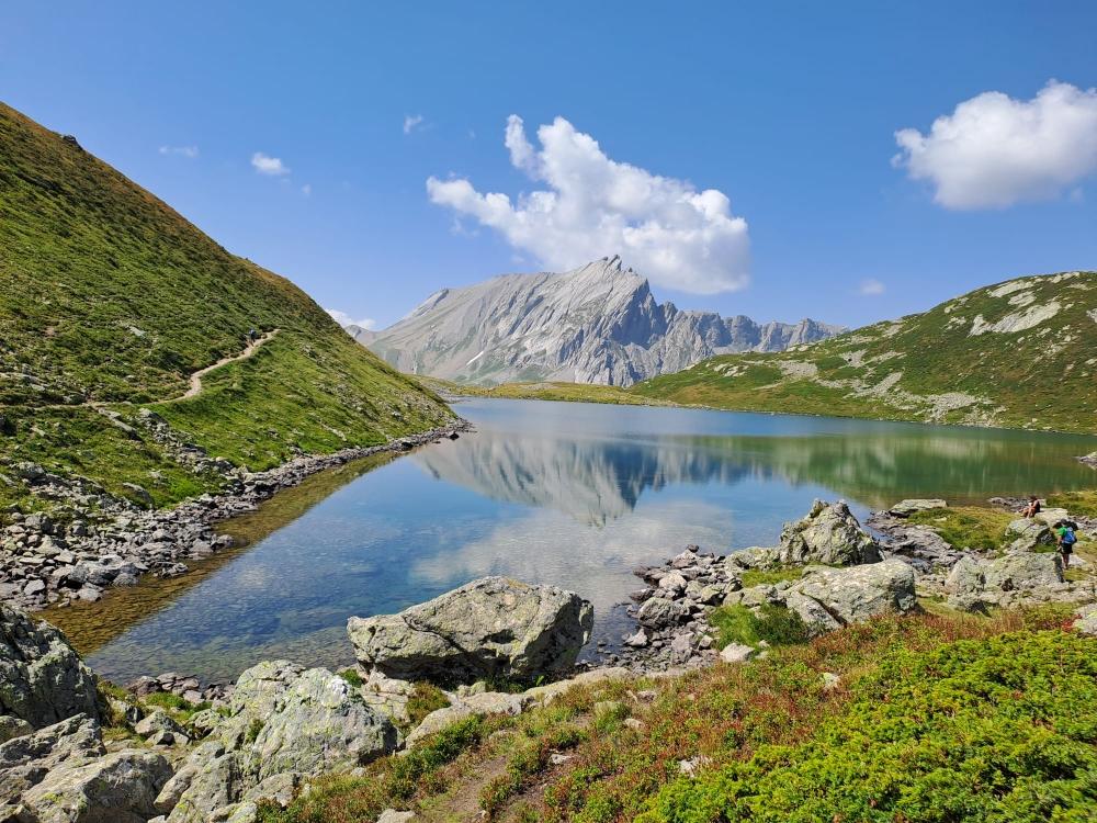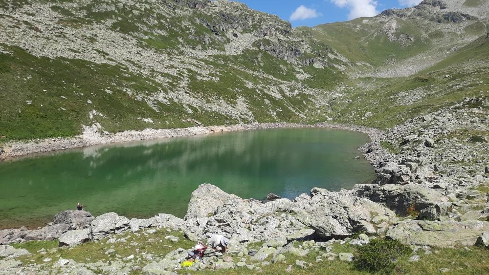 Randonnée aux lacs Jovet . Huit participants au départ pour les lacs Jovet ce dimanche 10 août. Cette jolie rando commence par une longue et dure montée, puis nous passons sur un pont romain qui surplombe des gorges profondes d’un bruyant torrent. Nous continuons par un large chemin aux différents dénivelés. Nous passons devant le refuge du « Nant Borrant », puis devant le refuge « de la Balme ». Ensuite la pente s’accentue jusqu’à la séparation entre le « TMB » direction le col du Bonhomme et les lacs Jovet, et là le nombre de randonneur a été divisé par trois. Dans la montée vers les lacs, nous passons devant une magnifique cascade. Arrivé au premier grand lac, nous en admirons la clarté et les reflets de celui ci. Nous le contournons et montons direction le lac Jovet supérieur, avec quelques difficultés par manque de balisage. Arrivé au bord de ce joli lac aux eaux vertes, nous faisons la pose déjeuner bien méritée. Nous redescendons ensuite en contournant le lac par un sentier escarpé, et retrouvons notre sentier allé jusqu’à la visite de la chapelle de notre dame de la Gorge. Et terminé par un pot offert par Sylvie Cochet pour fêter son anniversaire. Nous avons passé une excellente journée dans une très bonne ambiance, et sans chaleur excessive.