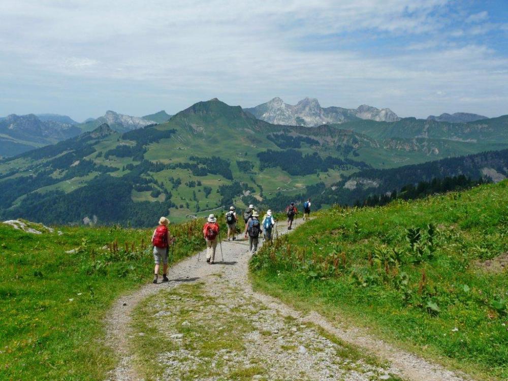 9 randonneurs au départ vers la pointe de Tardevan .
