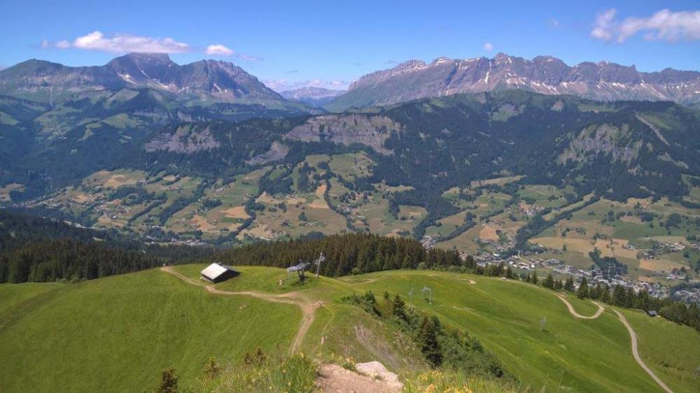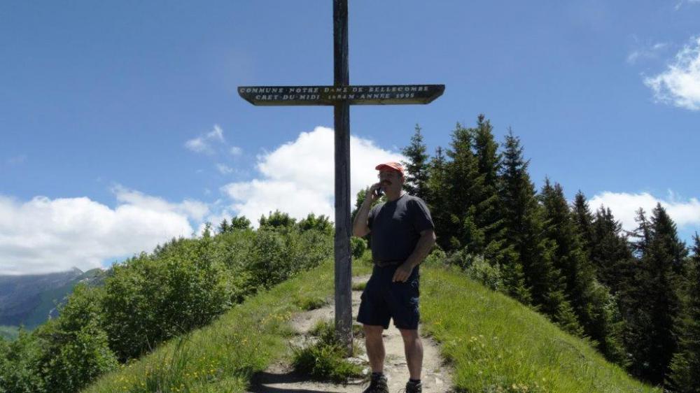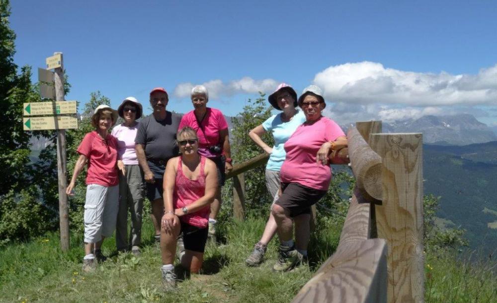 Belle randonnée avec le soleil au départ de Pratz sur Arly pour grimper à la croix du Midi . Belle grimpette de plus de 800 m de dénivelé , et après l'effort ... Vue sur la vallée jusqu'à Megève , sur le Mont Joly et le Mont Blanc malgré quelques passages de nuages . 11 randonneurs au départ , mais 7 au sommet ( en cause une panne mécanique ) , qui nous a privé de la compagnie des 4 autres . Nous avons gardé bon moral en descendant par le petit lac des Evettes ; avec un arrêt au chalet bar bien mérité .