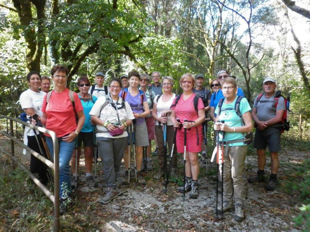 20 randonneurs au départ de Vieu d'Izenave sous un beau soleil d'Automne. Un premier passage sur la passerelle du Borey, où hélas, la cascade de la Roche Lamartine était à sec. Après avoir traversé les villages de Talipiat et Corcelette, nous gravissons un sentier qui nous mène au chemin du Sappel. Nous faisons une petite variante pour aller voir le château du Sappel, bâtiment datant du 18ème siècle. Nous reprenons alors notre chemin pour rejoindre le parking. Le tout dans la bonne humeur habituelle. Une première réussie pour Philo