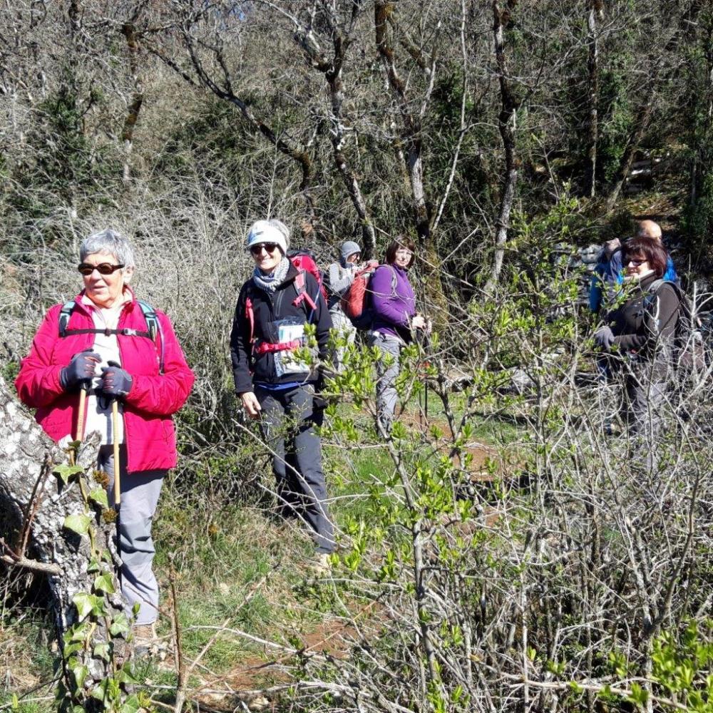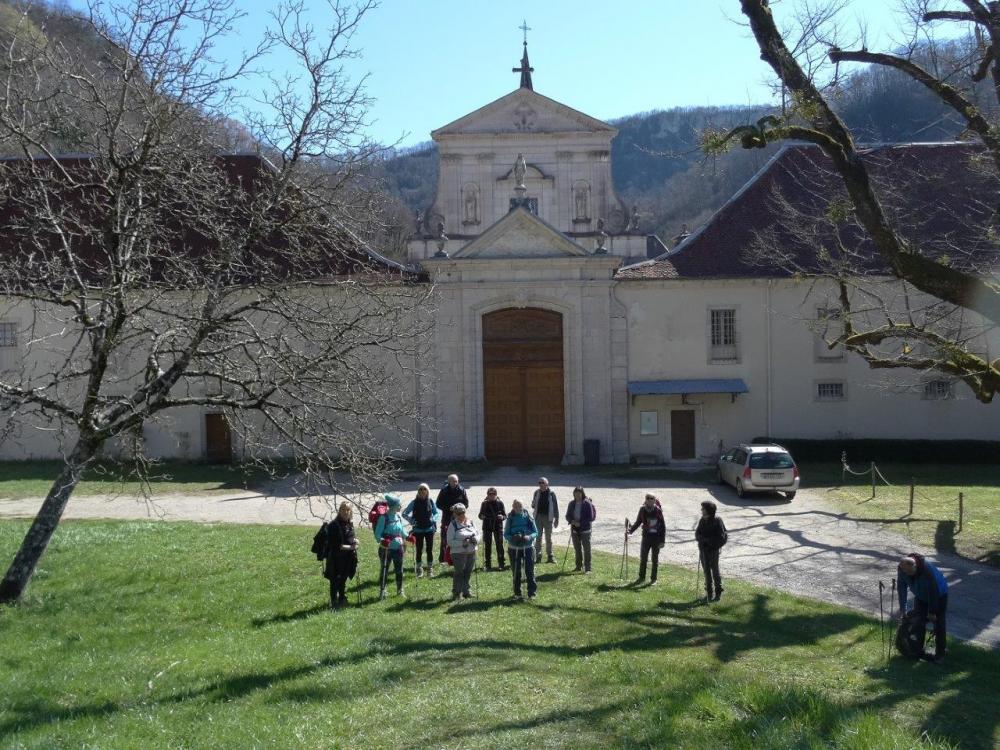 C'est par une belle journée ensoleillée accompagnée d'un vent glacial que 13 randonneurs se sont donné rendez-vous pour faire le tour de l'Abbaye de Sélignac. Partis de Corveissiat, laissant le hameau de Lavillat sur la droite, nous allons sur le sentier au milieu des champs jusqu'à Arnans où nous traversons le village, passons devant l’église et descendons jusqu'au point de vue de la Croix avec vue sur l'Abbaye. Ensuite 2ème point de vue où se trouve la statut d’un Saint. Nous arrivons enfin face à l’imposante porte d'entrée de l'Abbaye fondée en 1211. Les Chartreux faisaient vœux de solitude et de silence. Les derniers moines en sont partis en 2009 pour la Chartreuse de Voiron . Maintenant c’est un lieu de retraite où sont organisés des séminaires dans le silence de la Chartreuse (comme dit Madeleine ce n’est pas pour tout le monde). Nous longeons le mur d'enceinte puis passons sous la route et à proximité de la cascade, nous montons en suivant le Renedou. Après tout ce chemin petite pause casse croûte bien méritée. Départ pour la dernière grimpette et arrivée au sommet, nous longeons la crête sur les rochers et nous avons encore un beau point de vue sur l'Abbaye. Nous retrouvons nos voitures tous bien contents de notre dimanche.