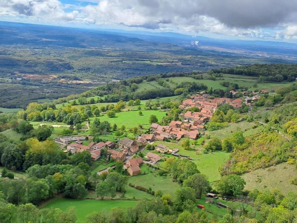 Dix randonneurs se rendent à Bouis, hameau de Villebois pour la randonnée Les Balcons de Souclin. Le départ s'effectue sous un ciel gris. Après une montée soutenue, nous atteignons le village de Souclin, villages avec de belles maisons en pierres. La montée à la Roche de l'Eglise se poursuit par la Combe de Saix. Pour la pause repas, nous nous posons à la Roche de l'Eglise d'où nous avons un magnifique panorama. Vue sur les villages de Souclin, Soudon, sur la plaine du Rhône. Au retour à l'entrée de Bouis, nous nous arrêtons devant une maison forte en cours de restauration. Un bénévole passionné nous propose une visite du site et nous explique les travaux effectués (taille des pierres...) Ce monsieur nous indiquele monolithe su la place de Villebois vers lequel nous nous arrêtons en partant.