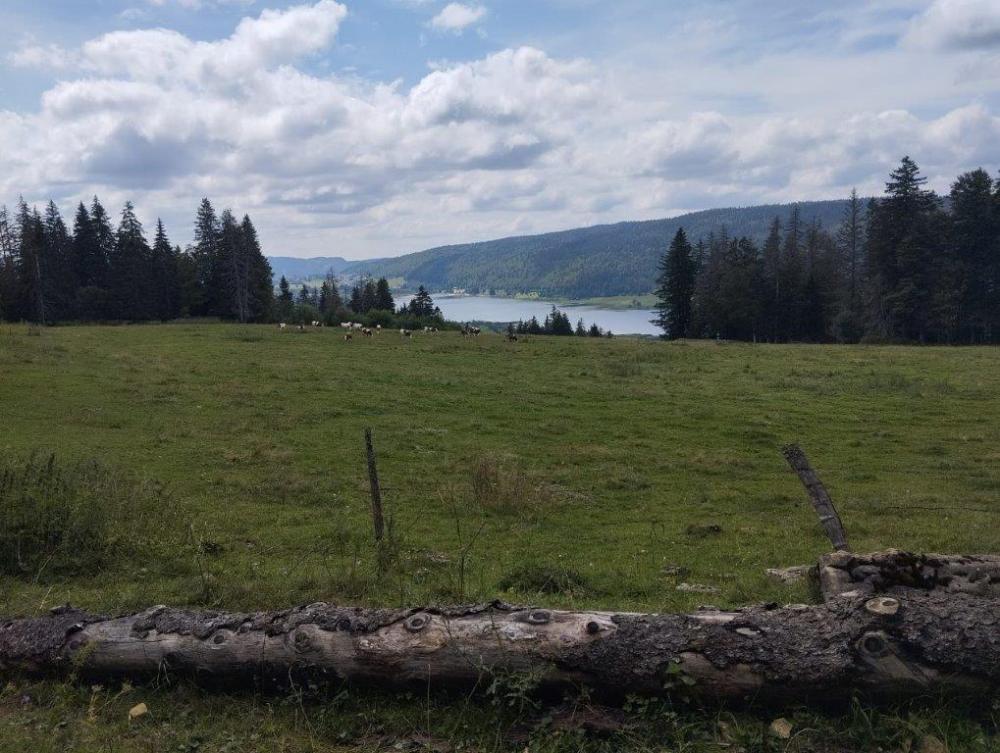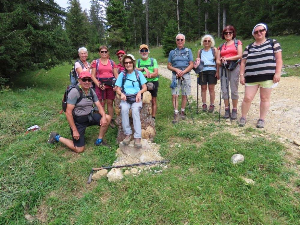 Après une ascension par un sentier bordé de sapins, nous avons atteint le sommet du Mont Sala à 1511 m d’altitude avec une vue sur le lac Léman et la Dole. Après la pause repas, nous avons pris la descente au milieu des champs avec des troupeaux de vaches. Nous avons vu plusieurs sculptures taillées dans des troncs (un fauteuil, des godillots et des animaux. Une borne au bord du chemin, nous a indiqué que l on était passé en Suisse quelques mètres après le parking .Une belle journée avec un ciel un peu couvert.