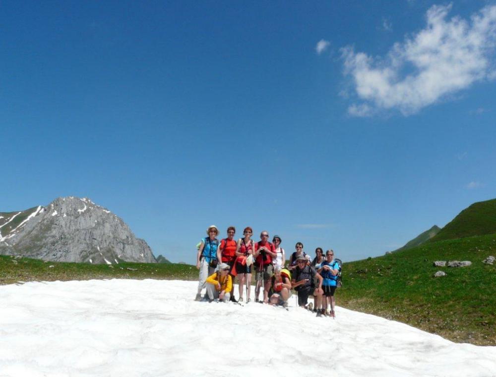 Départ à 6H30 de onze courageux pour une superbe randonnée au coeur du massif de Bauges . La bonne humeur était au rendez-vous ainsi que les coups de soleil .