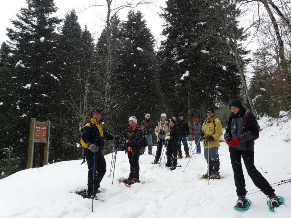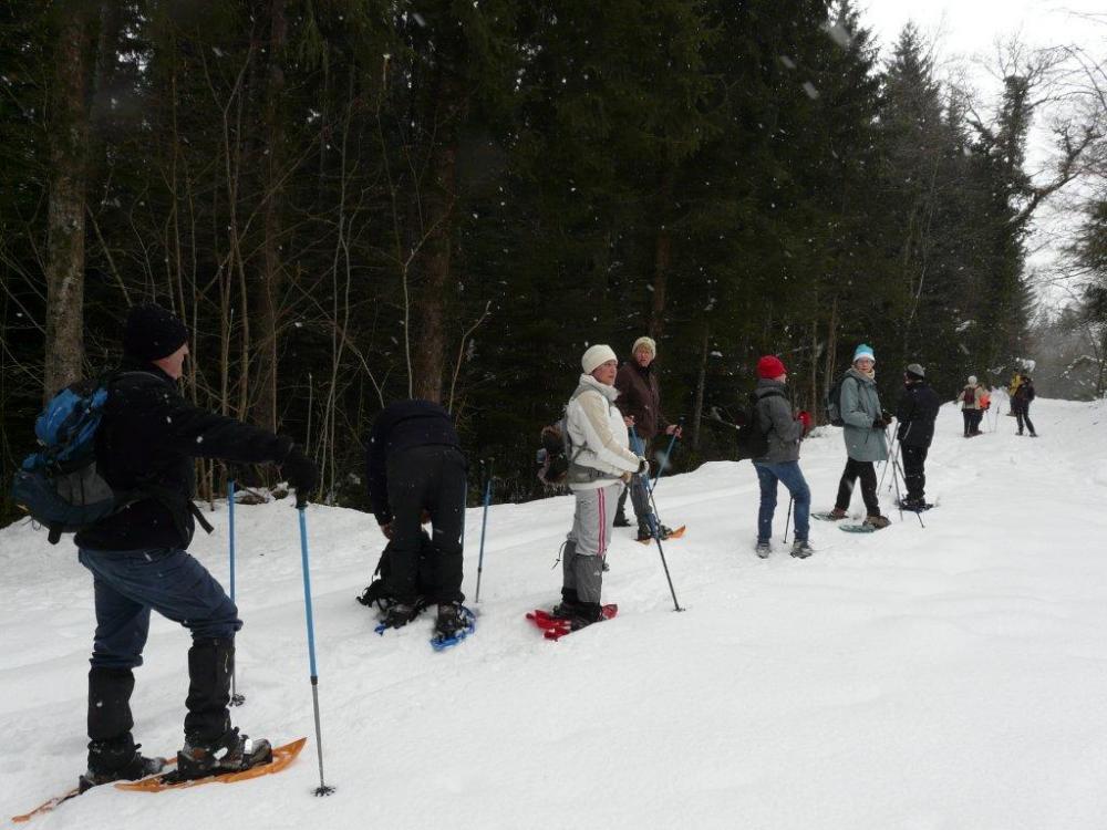15 randonneurs au départ du Chalet de CHARBILLAT pour une ballade en raquettes sur les hauteurs d'IZERNORE , depuis le chalet CATTIN - CHARBILLAT - le Pylône (point de vue) - traversée de la route sur ROCHE - descente vers CEYSSIAT et remontée au Chalet par la route ; temps couvert et beaucoup de flocons par moment ; un bel après-midi dans une ambiance conviviale comme d'habitude .